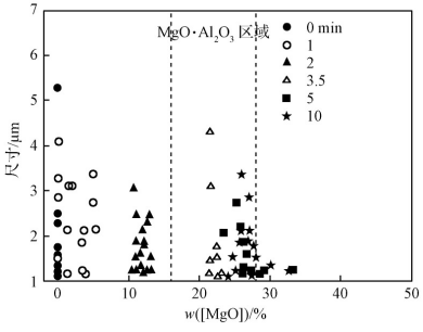 摘 要:爐外精煉是煉鋼流程中控制鋼中非金屬夾雜物的重要轉折點,作為整個精煉過程中與鋼液實時接觸的鋼包內襯用耐火材料,因為高溫物理化學反應易向鋼中引入夾雜物,導致精煉效果達不到預期。通過對典型現役鋼包內襯用耐火材料與不同脫氧鋼之間的界面反應歸納發現,鋼包內襯用耐火材料會對鋼中夾雜物的形貌、成分和理化性能產生影響,既可向鋼中引入夾雜物,也能夠吸附去除夾雜物。提出未來鋼包內襯用耐火材料應被賦予更多凈化鋼液等功能指標的發展方向。鋼鐵行業是體現一個國家整體工業發展水平的重要標志,對保障國家重大工程建設、提升裝備制造水平、促進節能減排和相關應用領域技術升級具有重要意義。近年來,國內鋼鐵企業加大研發投入和技術改造力度,盡管實現了鋼鐵產量的快速增長和品種的迅速豐富,但是一些高端特殊鋼如高鐵用軸承鋼和航空飛機起落架用鋼仍未擺脫依賴進口的局面。為助力解決上述問題,2019年工信部將高檔軸承鋼等40種高品質鋼納入《重點新材料首批次應用示范指導目錄》中,對相關材料發展和應用進行傾斜支持。這些材料性能突破的關鍵在于精確控制非金屬夾雜物。當夾雜物以不利的尺寸、形態和分布特征存在時,會破壞基體的連續性和完整性,嚴重影響鋼材質量和使用性能[1,2,3,4,5]。關于夾雜物的去除問題,眾多科研人員圍繞如何提高夾雜物去除率開展了大量研究工作,開發出超低氧冶煉和夾雜物塑性化等先進冶煉技術和裝備[6,7,8,9,10,11,12,13,14,15,16,17]。研究發現[18],這些技術和裝備的革新可以有效減少夾雜物的數量和降低夾雜物的危害,但仍無法實現對所有夾雜物尺寸和分布的精確控制。這說明,對于流程長、環節多的高端鋼來講,夾雜物的精準控制需要多方面的協同貢獻。進一步對夾雜物來源的跟蹤研究發現,在整個冶煉中與鋼液實時接觸的耐火材料是影響鋼中夾雜物尺寸和分布的主要因素之一。隨著爐外精煉和合金化工藝在煉鋼過程中所占比重越來越高,鋼包工作襯用耐火材料的重要性愈發凸顯,其對鋼中夾雜物的影響同樣不可忽視。中國鋼包內襯用耐火材料隨著爐外精煉技術的發展不斷改進[19]。為了滿足不同時期內的精煉需求,近幾十年來冶金和材料科研技術工作者不斷更新設計理念并相繼開發出多種鋼包內襯用耐火材料體系[20,21,22,23],包括高鋁系耐火材料、碳系復合耐火材料、鎂鋁系無碳耐火材料和CaO系耐火材料等。這些鋼包內襯用耐火材料在爐外精煉的發展史上均扮演過重要的角色[24,25,26],其中基于天然鋁礬土合成的高鋁系耐火材料由于較低的使用壽命和較差的高溫服役性能,例如抗熱震性差、掛渣嚴重和抗渣侵能力弱等逐漸退出精煉鋼包內襯的歷史舞臺[27,28,29];其余耐火材料目前雖被使用,但受其材料組成成分和自身結構影響仍均存在一些問題,如碳系復合耐火材料向鋼中的增碳行為[30]、鎂鋁系無碳耐火材料的抗熱震性問題、CaO系耐火材料的水化問題等[31,32],這些問題會導致精煉工藝達不到預期效果。此外,現役耐火材料在精煉過程中與鋼液之間的界面反應也會對鋼中的非金屬夾雜物造成影響。關于鋼包內襯用耐火材料對鋼中非金屬夾雜物和鋼材性能的影響已有較多報道,結果表明:不同材質的耐火材料與鋼液的界面反應機制不同,對鋼中夾雜物形成的影響也有較大差異。因此,有必要對現役主流鋼包內襯用耐火材料對鋼中非金屬夾雜物的影響進行回顧總結,并探討未來鋼包內襯用耐火材料的發展方向。1 典型現役鋼包內襯用耐火材料對非金屬夾雜物的影響在實際精煉過程中,鋼包內襯用耐火材料以較大面積與鋼液實時接觸。伴隨著高溫和攪拌等外場作用,鋼液會滲透耐火材料并發生界面反應,逐漸導致耐火材料的蝕損,影響鋼液成分。基于精煉鋼包內襯用耐火材料材質的差別和精煉工藝的不同,鋼包內襯用耐火材料的蝕損程度和對鋼中夾雜物的影響存在差異。因此,了解鋼包內襯用耐火材料對鋼中夾雜物的影響,不僅對冶金工業中夾雜物的控制具有重要意義,還將對未來鋼包內襯用耐火材料的發展提供指導。以現役主流的MgO系耐火材料和鎂鋁質耐火材料為對象,回顧和總結其在精煉過程中作為鋼包內襯對鋁脫氧鋼和硅錳脫氧鋼中夾雜物的影響規律。1.1 MgO系耐火材料對鋼中非金屬夾雜物的影響1.1.1 對鋁脫氧鋼中夾雜物的影響金屬鋁具有價格便宜,親氧能力強,脫氧速度快等優點,是一種十分受歡迎的脫氧劑。在使用鋁脫氧時鋼中的總氧含量可以控制在極低水平,所以對鋼中總氧含量要求較高的鋼種一般采用鋁作為脫氧劑,其中典型的代表鋼種有軸承鋼、IF鋼、管線鋼等。圍繞MgO系鋼包內襯耐火材料對鋁脫氧鋼中夾雜物的影響已展開了大量研究[33,34,35,36]。Harada A等[37,38]、Brabie V等[39]和Jansson S等[40]在研究MgO-C耐火材料與鋁鎮靜鋼之間的反應機理時,發現在無任何鎂添加的情況下,不僅在鋼中出現了MgO和MgO·Al2O3夾雜物,而且在MgO-C耐火材料與鋼液界面處還形成了一層薄薄的鎂鋁尖晶石層;MgO-C質耐火材料是通過碳還原自身的MgO向鋼中溶解鎂并與鋼中的溶解鋁反應形成鎂鋁尖晶石夾雜物,見式(1)和式(2)。當采用鋁脫氧時,鋼中會存在較多的溶解鋁,這些溶解鋁對MgO-C耐火材料的溶解也會起到一定作用。LIU C[41,42]通過研究MgO-C耐火材料與鋁脫氧鋼的反應時發現:MgO-C耐火材料中